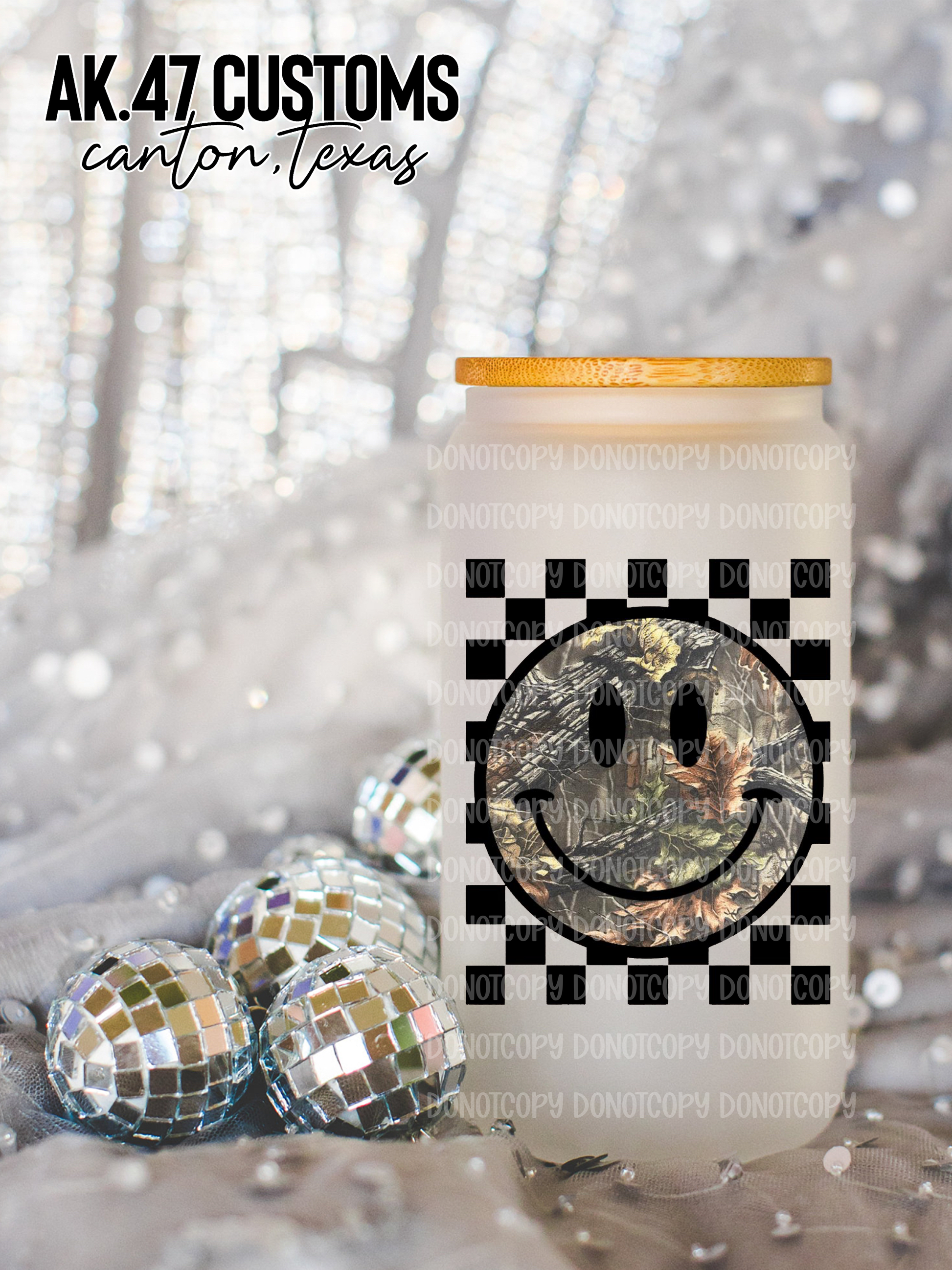 Camo Smiley Glass Tumbler